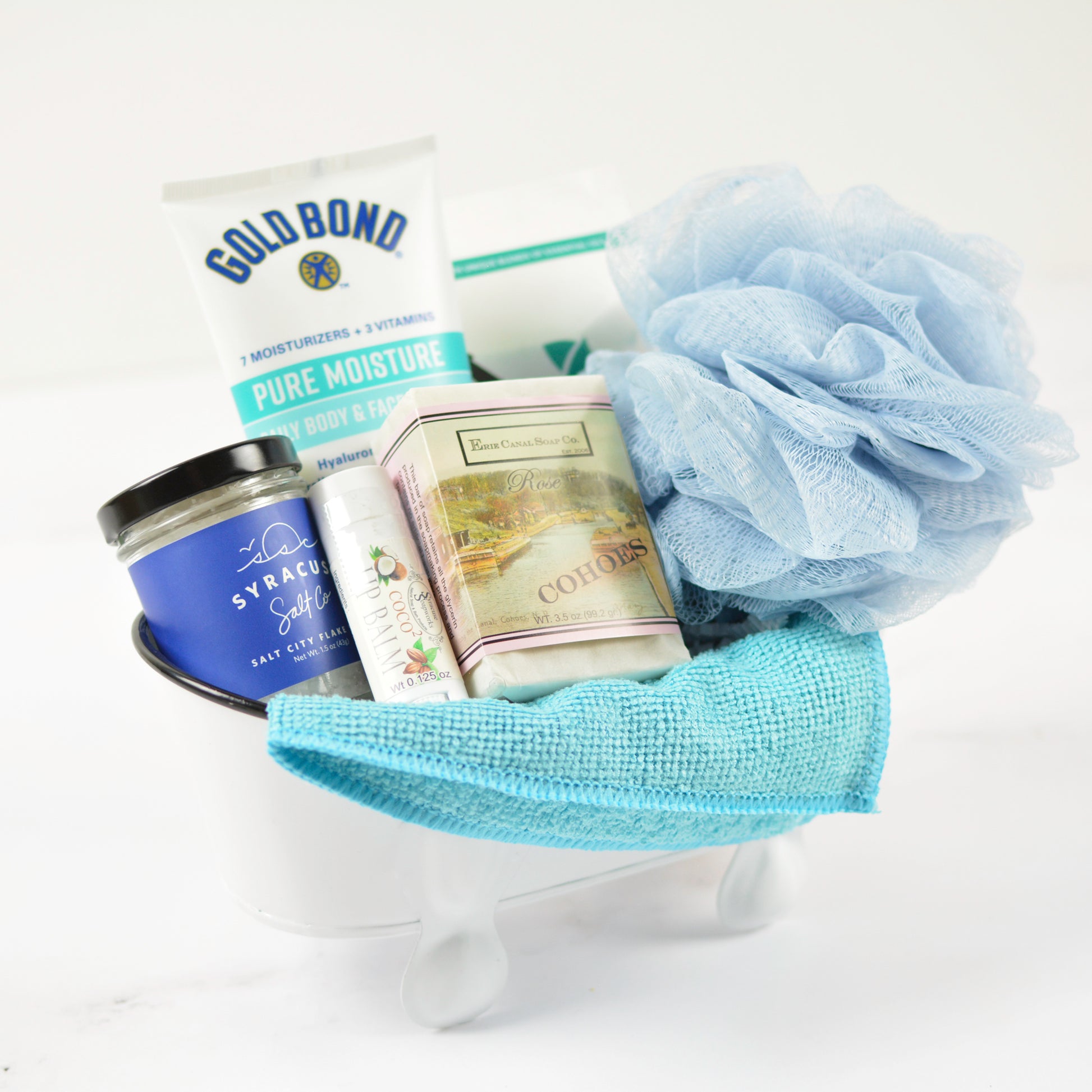 Escape into a world of luxury and tranquility with our exclusive spa gift set. Imagine a beautifully curated bathtub scene featuring a rich, aromatic bath soak that transforms your water into a soothing sanctuary. A plush loofah awaits to gently exfoliate and pamper your skin, preparing it for the nourishing touch of our hydrating body lotion. Adding an urban twist, our artisanal New York soap and signature New York lip balm deliver a perfect blend of timeless elegance and modern indulgence. This spa gift is more than a bath routine—it’s your personal retreat for rejuvenation and self-care.